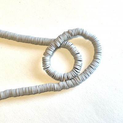 • Colar ou pulseira feita de peças circulares cinzentas sobre fundo branco