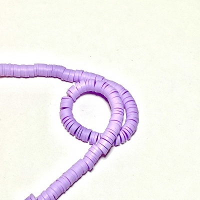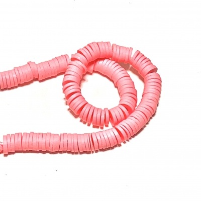• Colar de discos de material rosa claro enrolados em fio sobre fundo branco