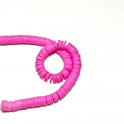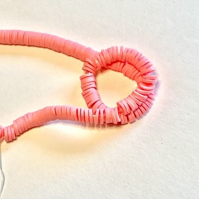 • Cordão rosa feito de pequenas peças circulares empilhadas em fundo branco