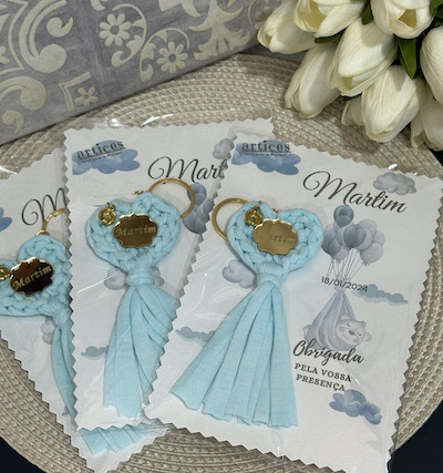 Lembrança Festa de Bebé (20 Unidades) 60,00 € Desconto de %. Partilhar Tipo de Nome Chapa Dourada Chapa Prateada Minie Dourada Minie Prateada Mickey Dourado Mickey Prateado Letras Douradas Letras Prateadas Modelo Borboleta Coração Ursinho Cor Rosa Azul Bege Comprar Contactar Lembrança de agradecimento ou presença de festa. Excelente para Batizados, Baby Shower, aniversários ou Chá revelação. Texto Personalizado --- ENCOMENDA MÍNIMO 20 UNIDADES --- IMPORTANTE!!! Deve fazer a encomenda, no mínimo 40 dias antes, da data de entrega pretendida No processo de checkout existe um campo designado de Observações. Escreva nesse campo, O NOME e o TEXTO PERSONALIZADO Marca artices Tags batizadobebepresentesprendasfeito com amorhandmadeartices portugalarticescriançababy shower inviteaniversáriochá revelaçãorecem mama Detalhes acerca do seu pedido A sua encomenda deve ser feita NO MÍNIMO 40 dias antes da data da celebração Características