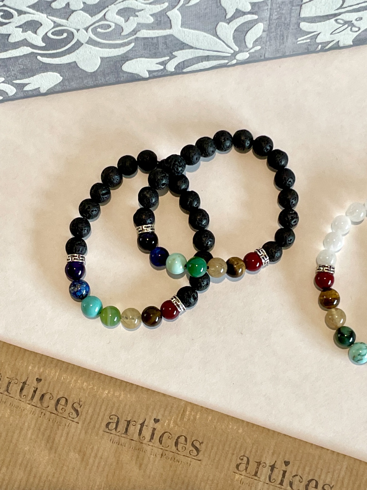 Estas pulseiras utilizam PEDRAS NATURAIS com propriedades energéticas e curativas que foram identificadas para transformar o bem-estar e estilo de vida do utente.